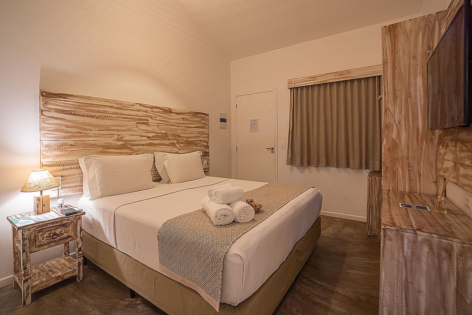 Muito conforto em nosso apartamento Deluxe, escolha entre uma cama de casal extra grande ou duas camas de solteiro, contando com TV, telefone, ar condicionado, isolamento acústico para muita tranquilidade durante sua estadia, secador de cabelo e máquina de café.
